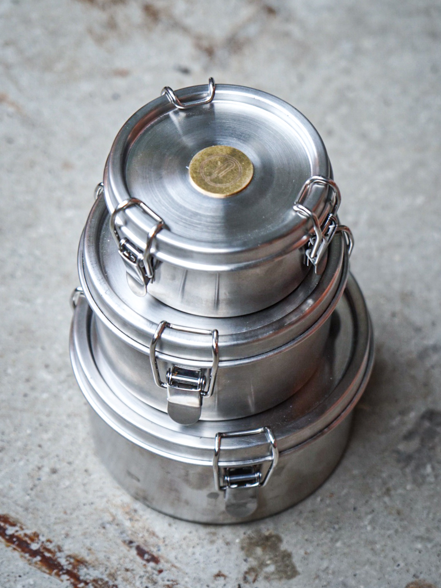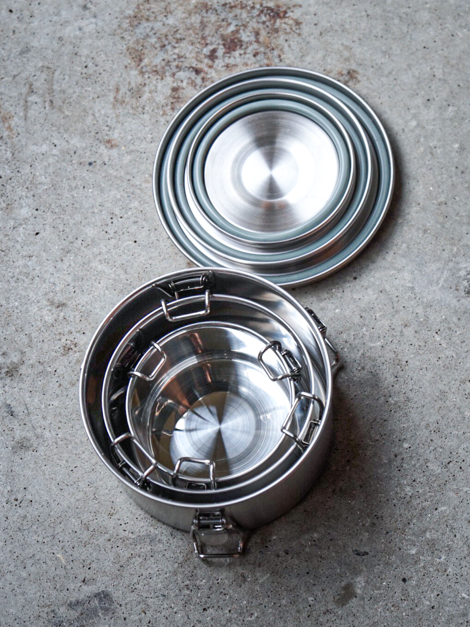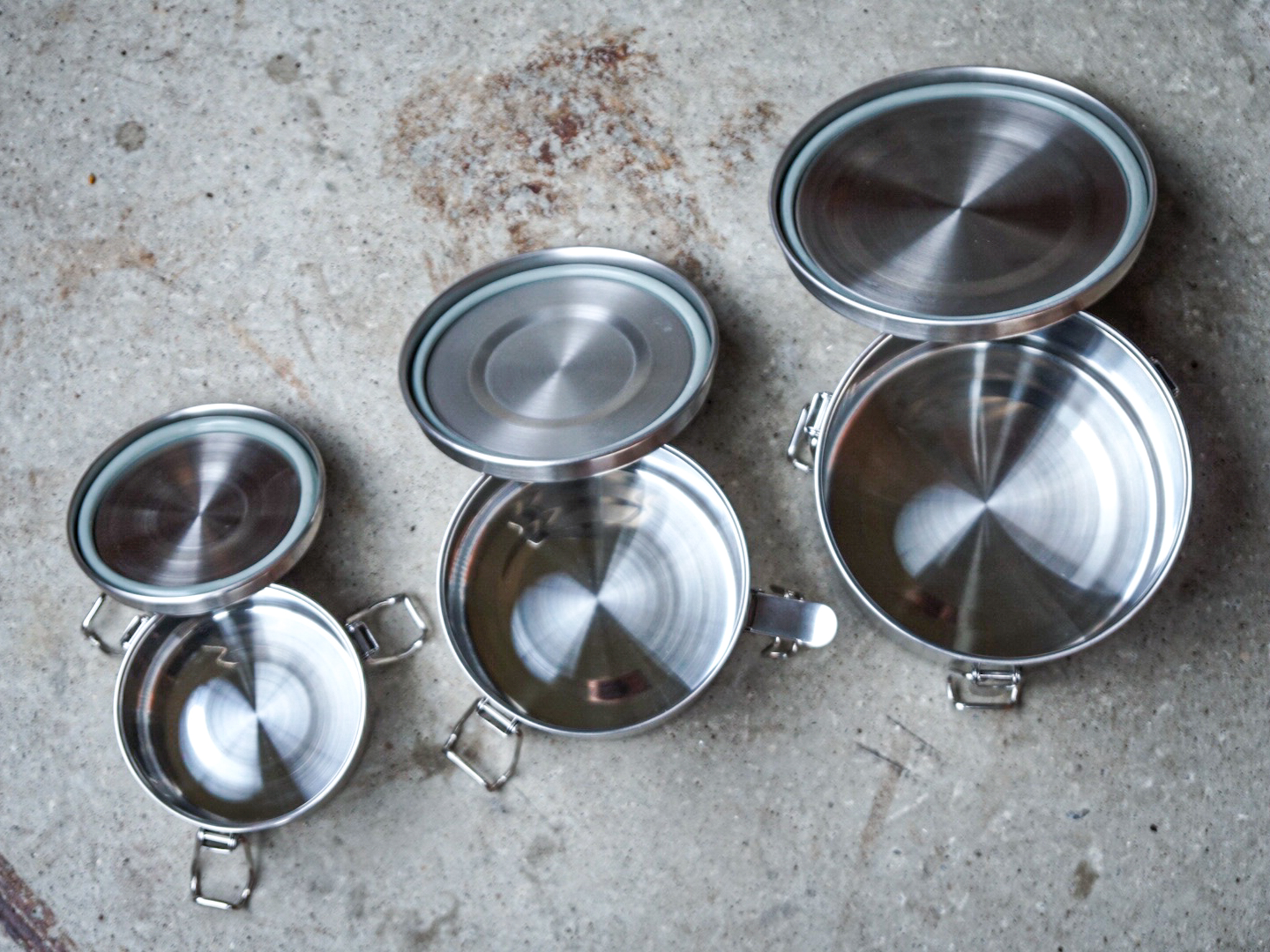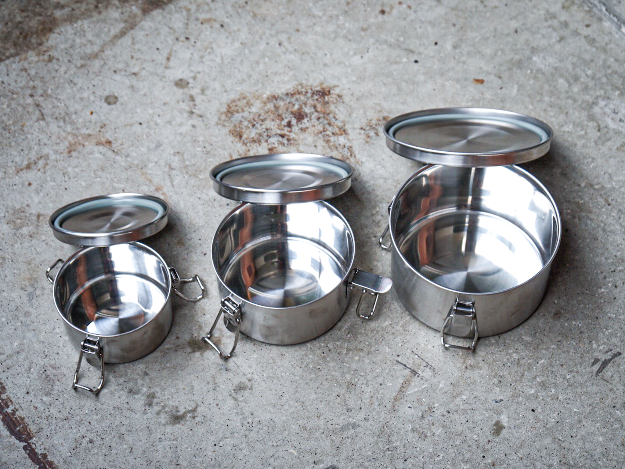 Cubos de almacenamiento apilables de acero inoxidable 18/8 en tres tamaños. A prueba de olores, a prueba de difusión y a prueba de errores. Fácil de mantener la humedad del aire constante.