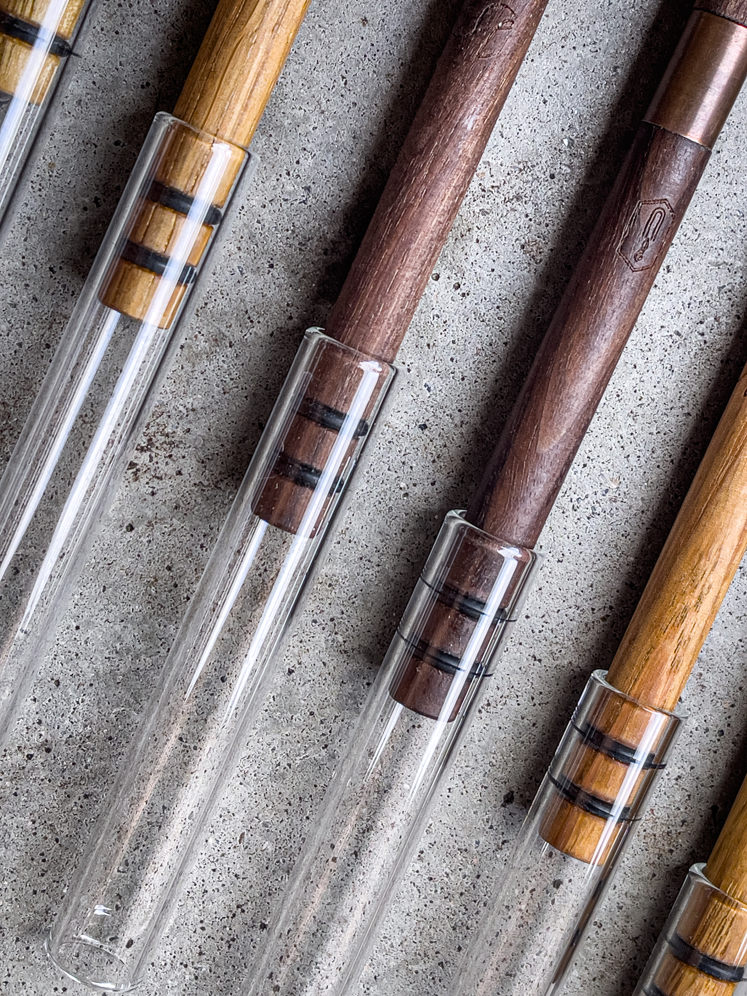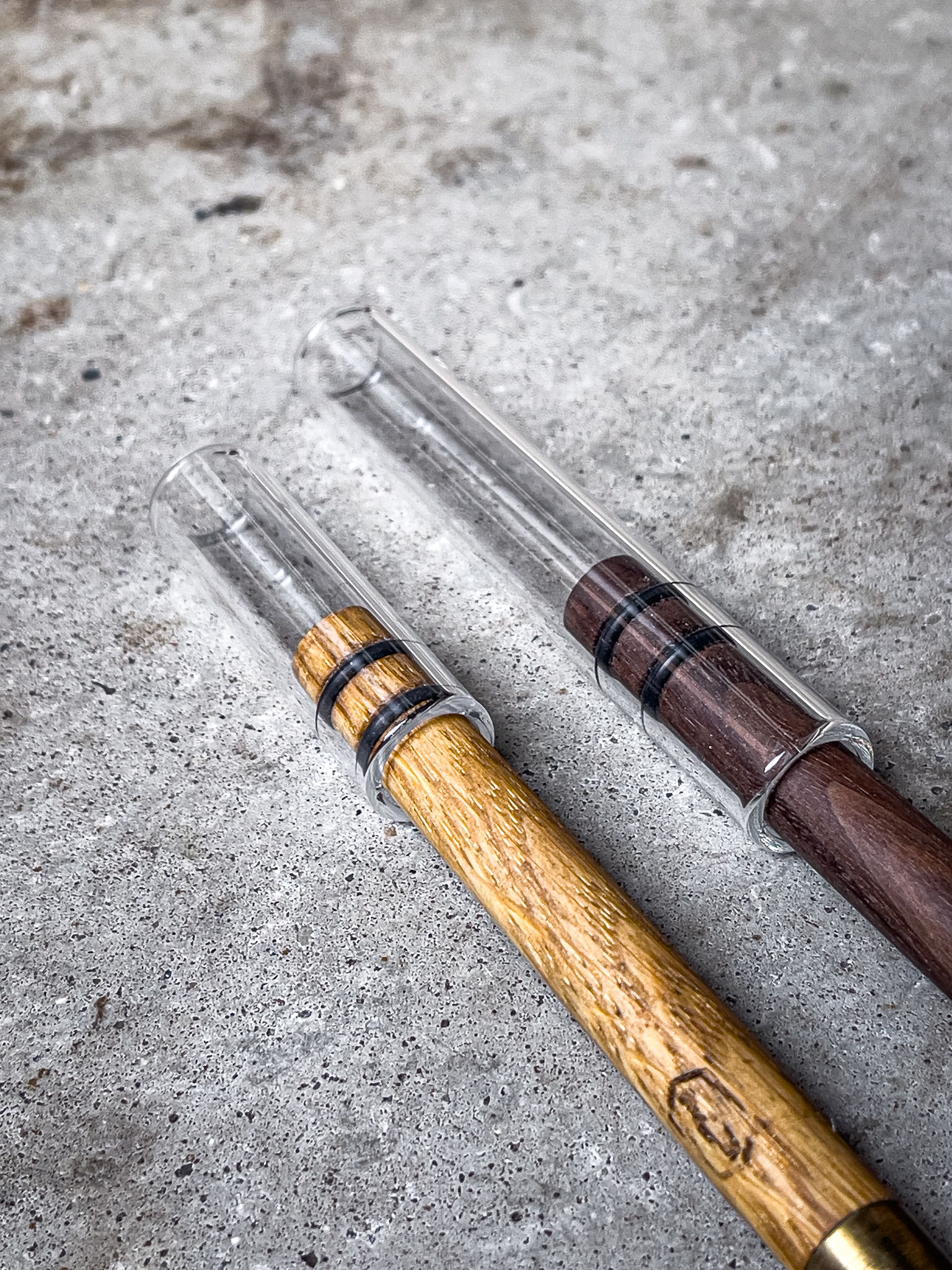Handmade, charcoal filtered glass blunt bringing the cigar feeling to you enjoyment of herbs & tobacco. Made from walnut, ash & oak wood, copper, brass & glass, presented and delivered in an organic cotton bag. Check out our new Multi-dapter to connect your glass blunt to your Dynavap, Saubi Pipe Bowl and even the Saubi‘s cap!